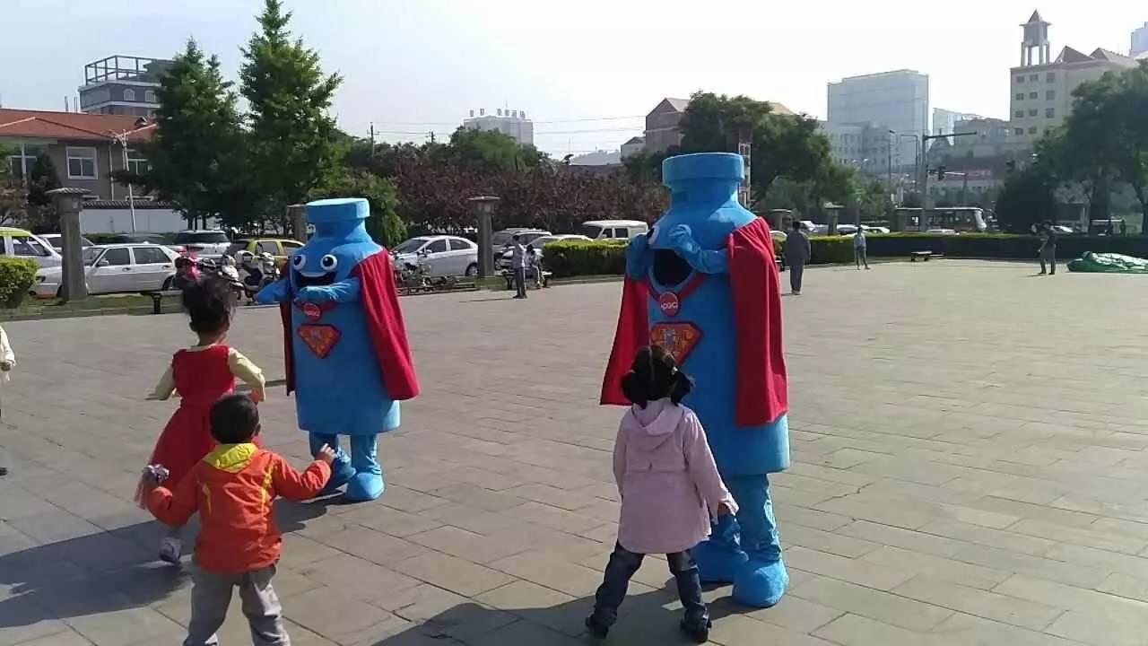 藍瓶超人與小朋友們一起互動